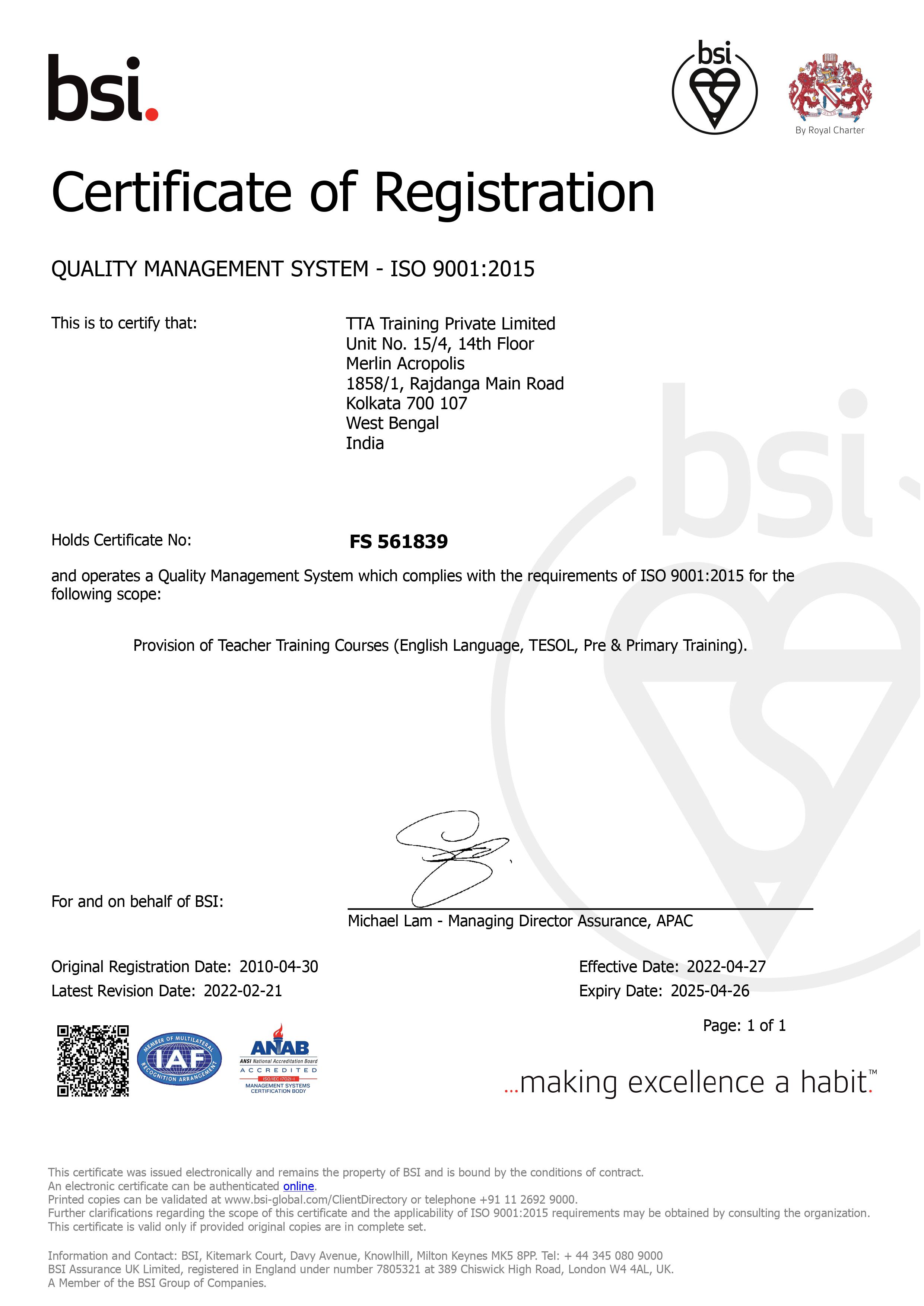 the field of education. The Training Company (ISO 9001:2015) is officially